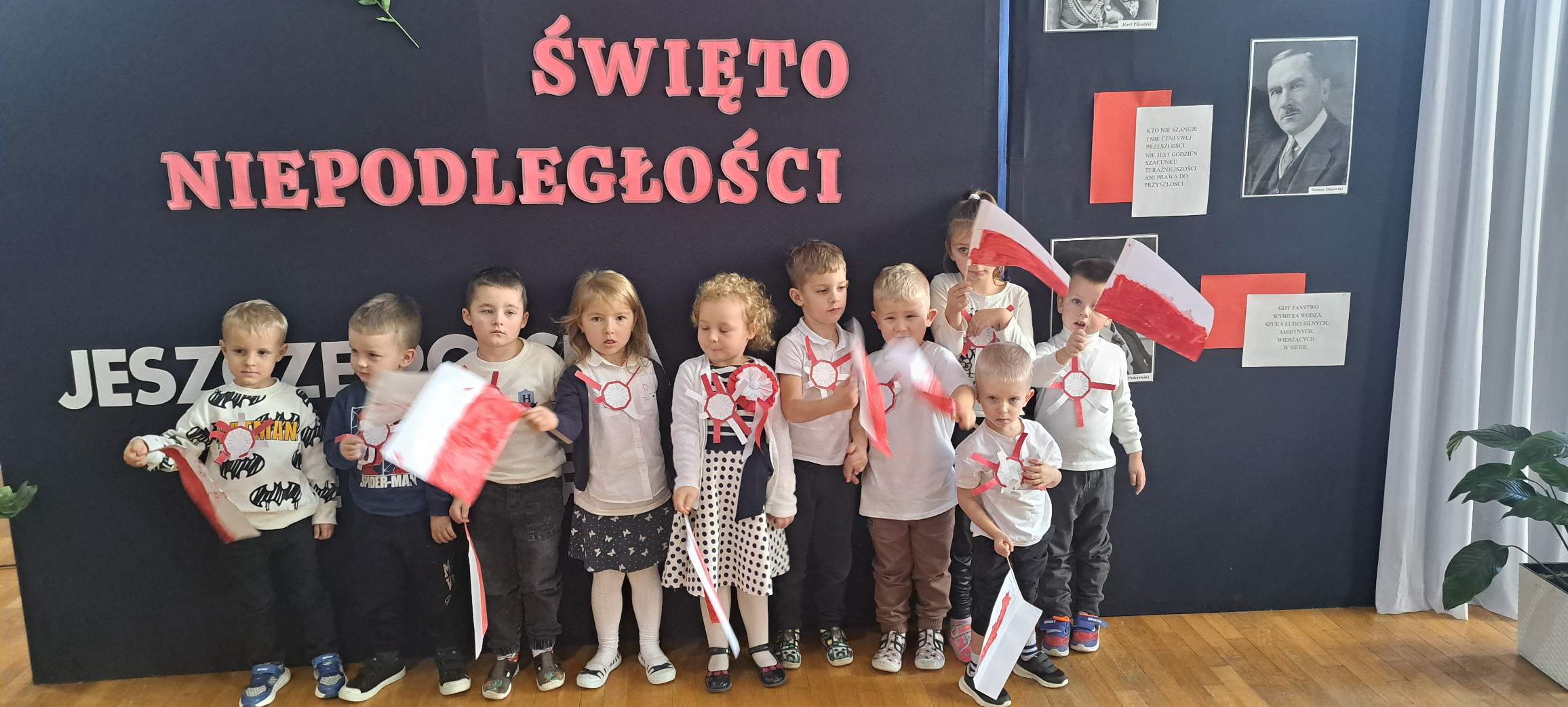 W ramach obchodów Święta Niepodległości dzieci z grupy „Jagódki” aktywnie uczestniczyły w przygotowaniach do szkolnych uroczystości. Podczas zajęć dzieci rozmawiały o znaczeniu tego ważnego święta, poznały symbole narodowe – flagę, godło i hymn – oraz utrwalały wiadomości o Polsce.
