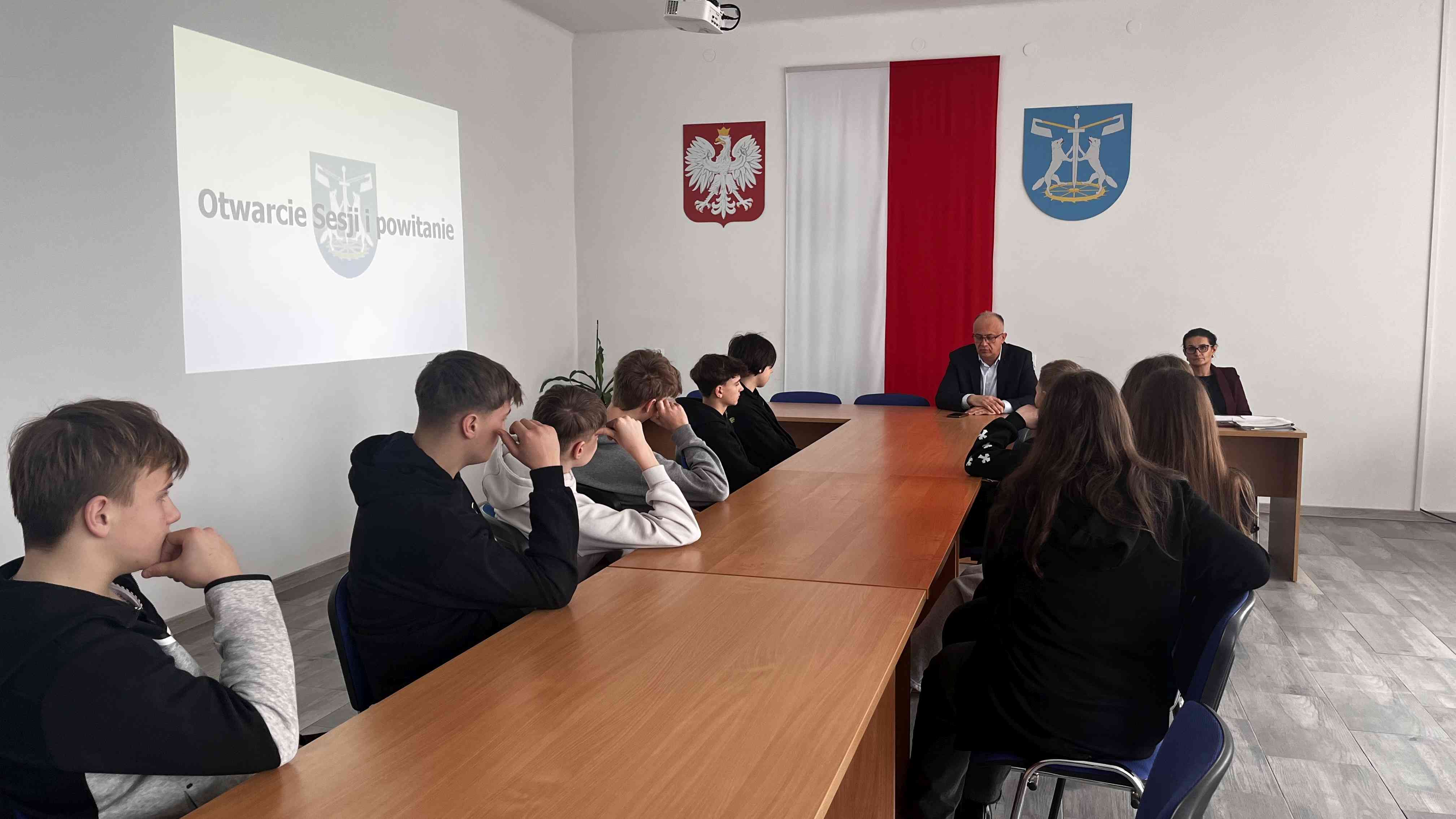 Uczniowie klasy 8 wzięli udział w wyjątkowej lekcji wiedzy o społeczeństwie, która odbyła się w Urzędzie Gminy Wilczyce. Spotkanie miało miejsce w sali posiedzeń pod przewodnictwem wójta gminy Roberta Palucha oraz zastępcy wójta Katarzyny Łukawskiej.