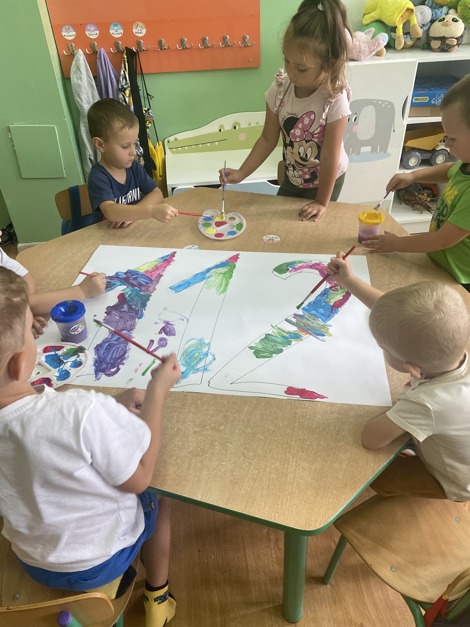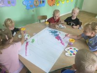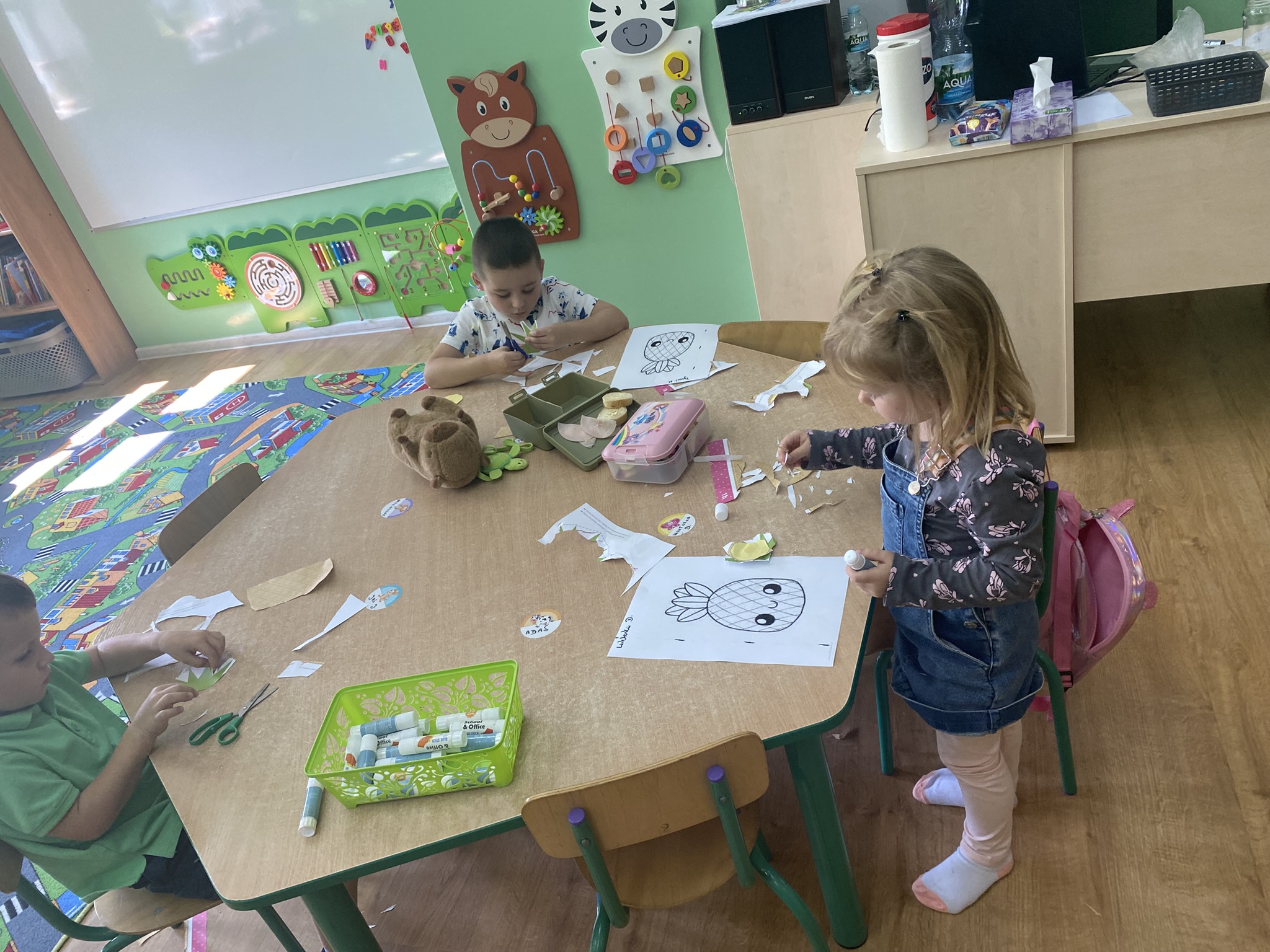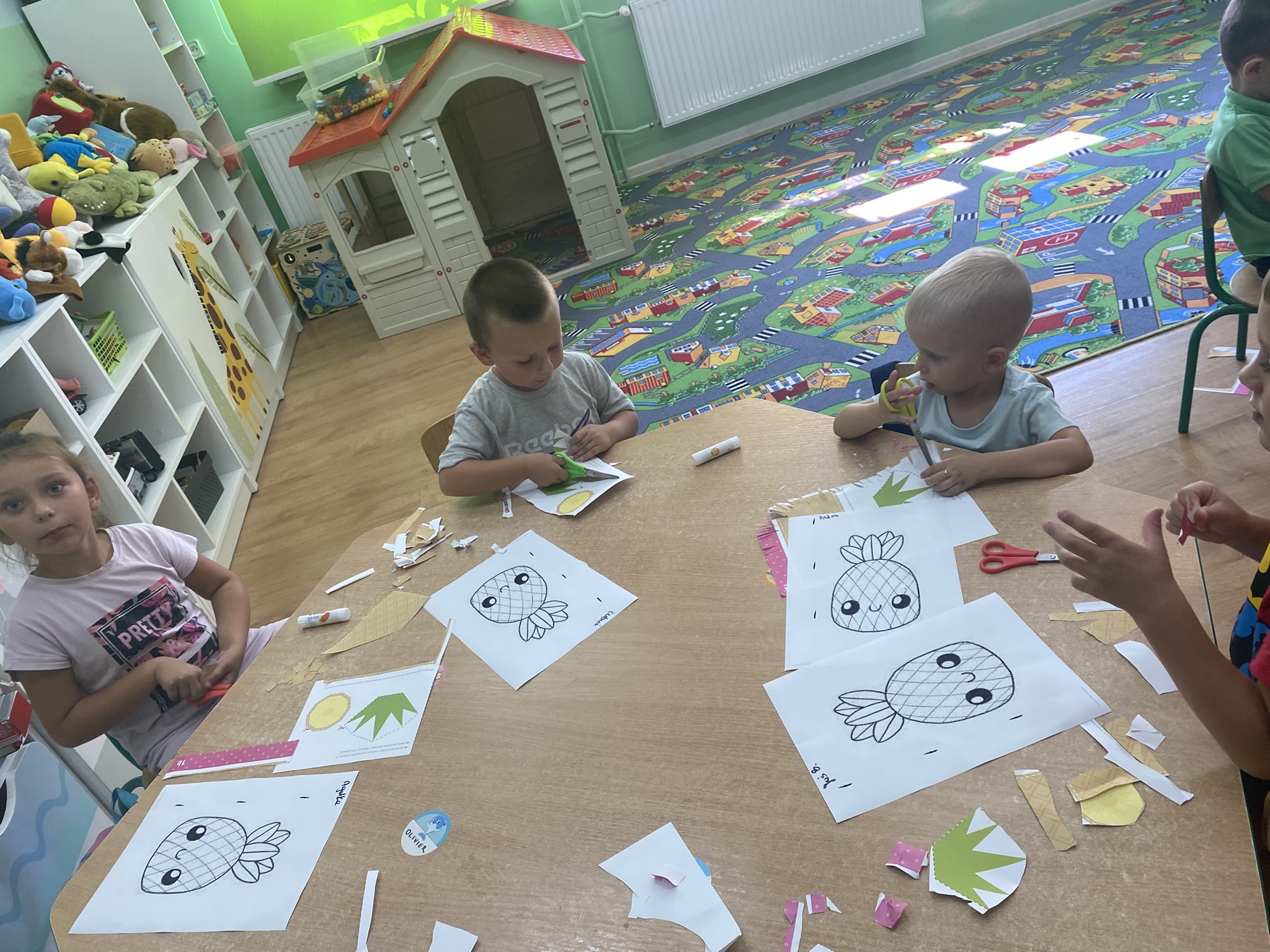 Okres adaptacyjny w naszym przedszkolu dobiegł końca. Dzieci w tym czasie aktywnie uczestniczyły w różnorodnych zajęciach – uczyły się współpracy, rozwijały swoje umiejętności manualne poprzez wycinanie i malowanie,