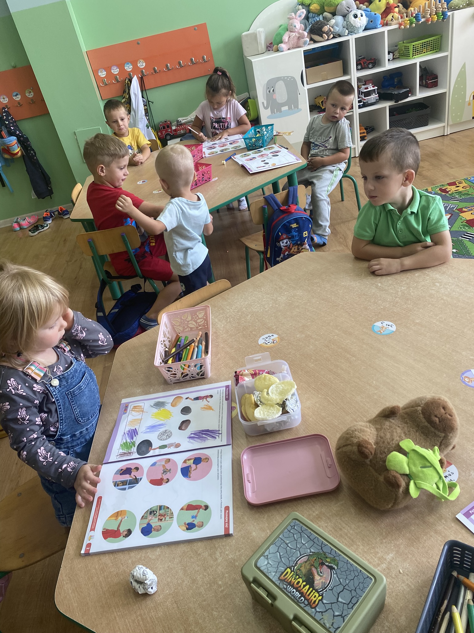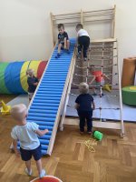a także poznawały zasady bezpieczeństwa, w tym ważny numer alarmowy 112. Nie zabrakło również zabaw ruchowych, które sprzyjały integracji grupy oraz rozwijały sprawność fizyczną. Adaptacja przebiegła pomyślnie, a dzieci coraz lepiej czują się w przedszkolnym otoczeniu :) 🙂
