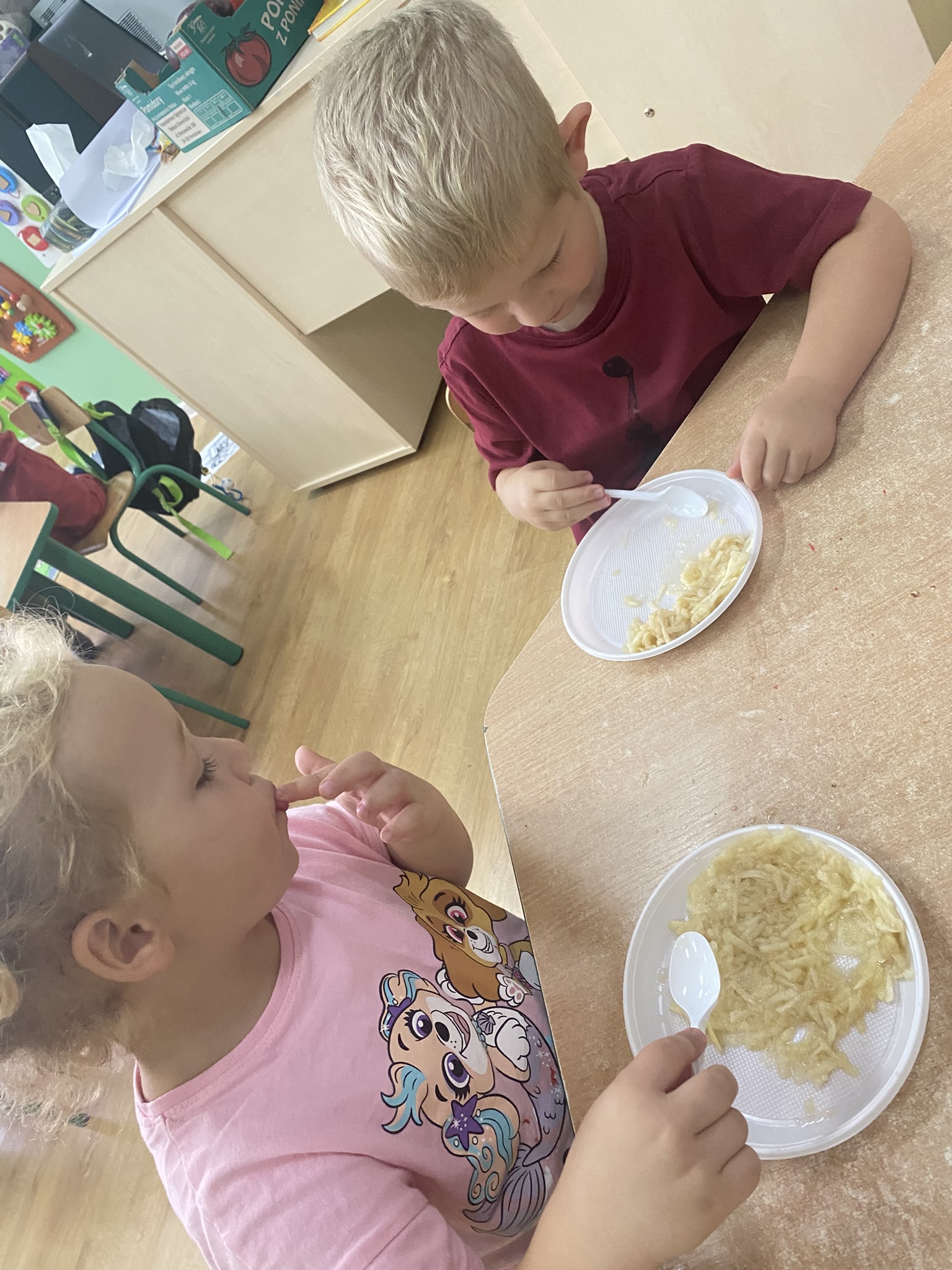 Ostatnio w naszej grupie, ,,Jagódki” obchodziliśmy Dzień Jabłka. Dzieci poznały różne odmiany jabłek, mogły je oglądać, porównywać i smakować. Największą atrakcją było przygotowanie soku z tartych jabłek – dzieci same uczestniczyły w tarciu owoców i obserwowały, jak powstaje zdrowy napój.