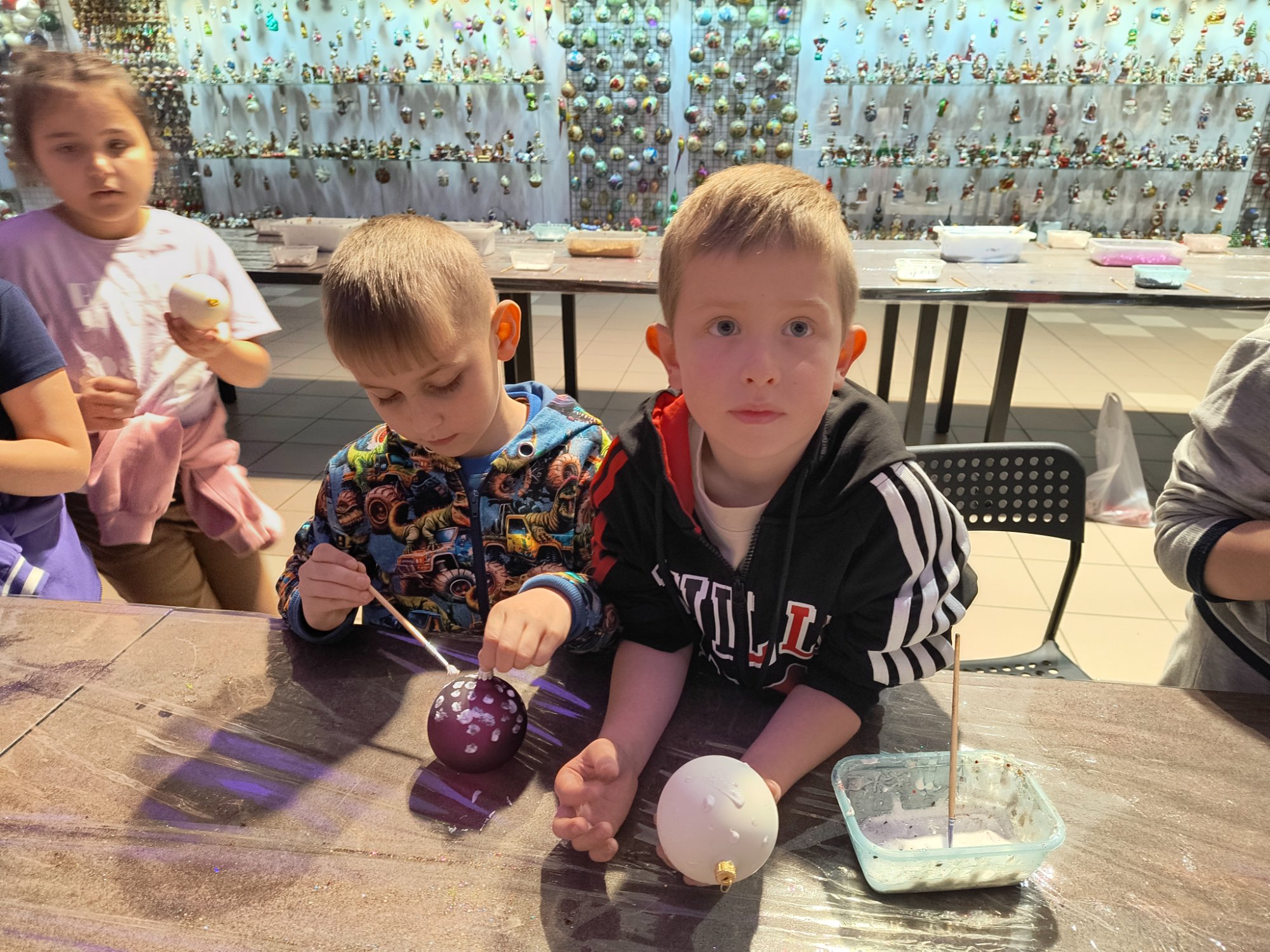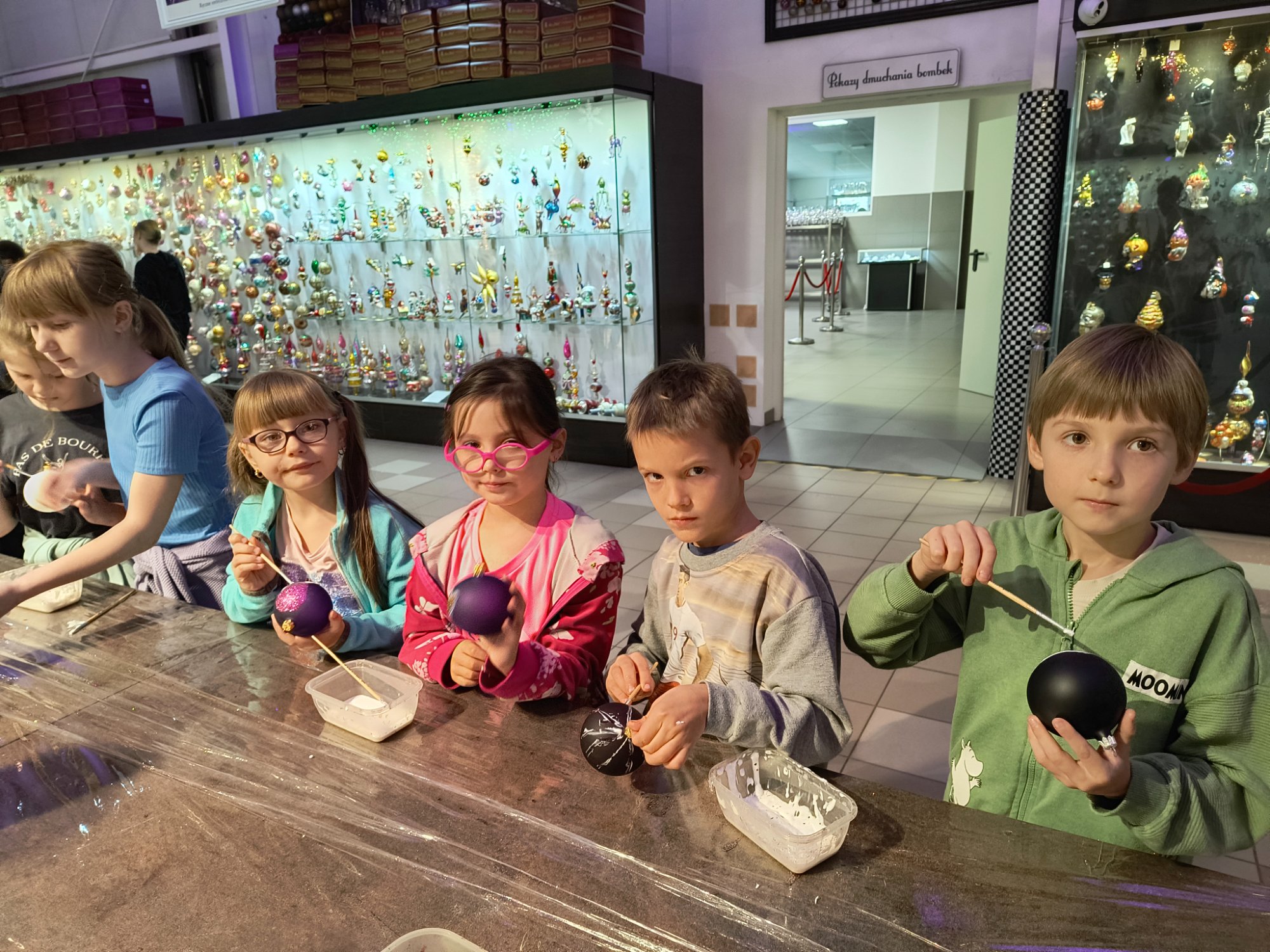 Wysłuchali historii tworzenia ozdób świątecznych, zobaczyli w jaki sposób powstają szklane cudeńka. Wzięli udział w warsztatach zdobienia bombek.