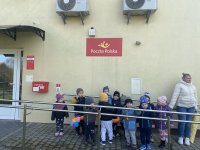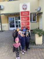 Dzieci z grupy „Jagódki” wybrały się na spacer po najważniejszych instytucjach użyteczności publicznej naszej gminy. Celem wycieczki było poznanie miejsc, w których na co dzień pracują osoby dbające o bezpieczeństwo, porządek i potrzeby mieszkańców.