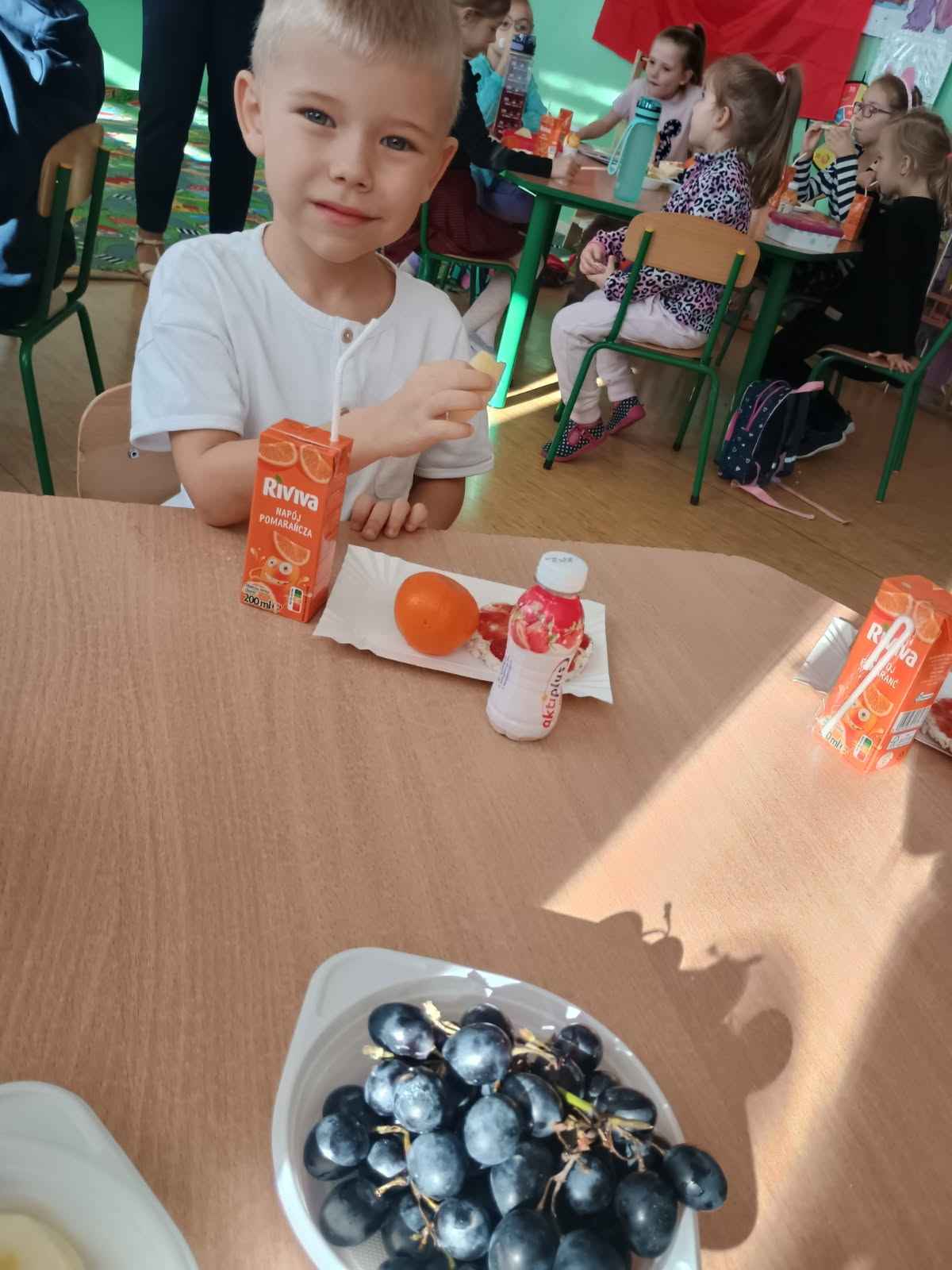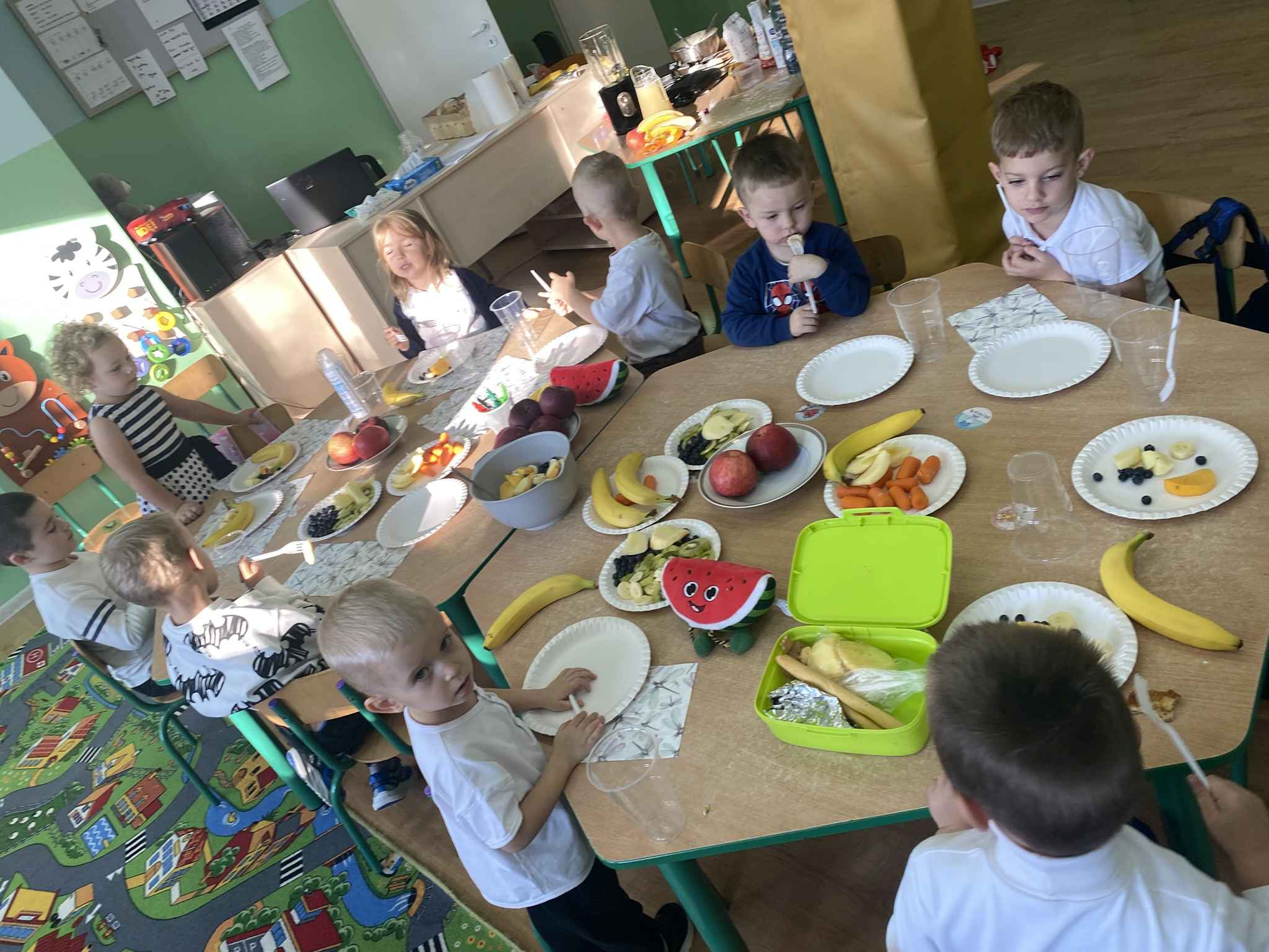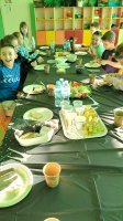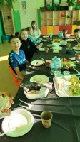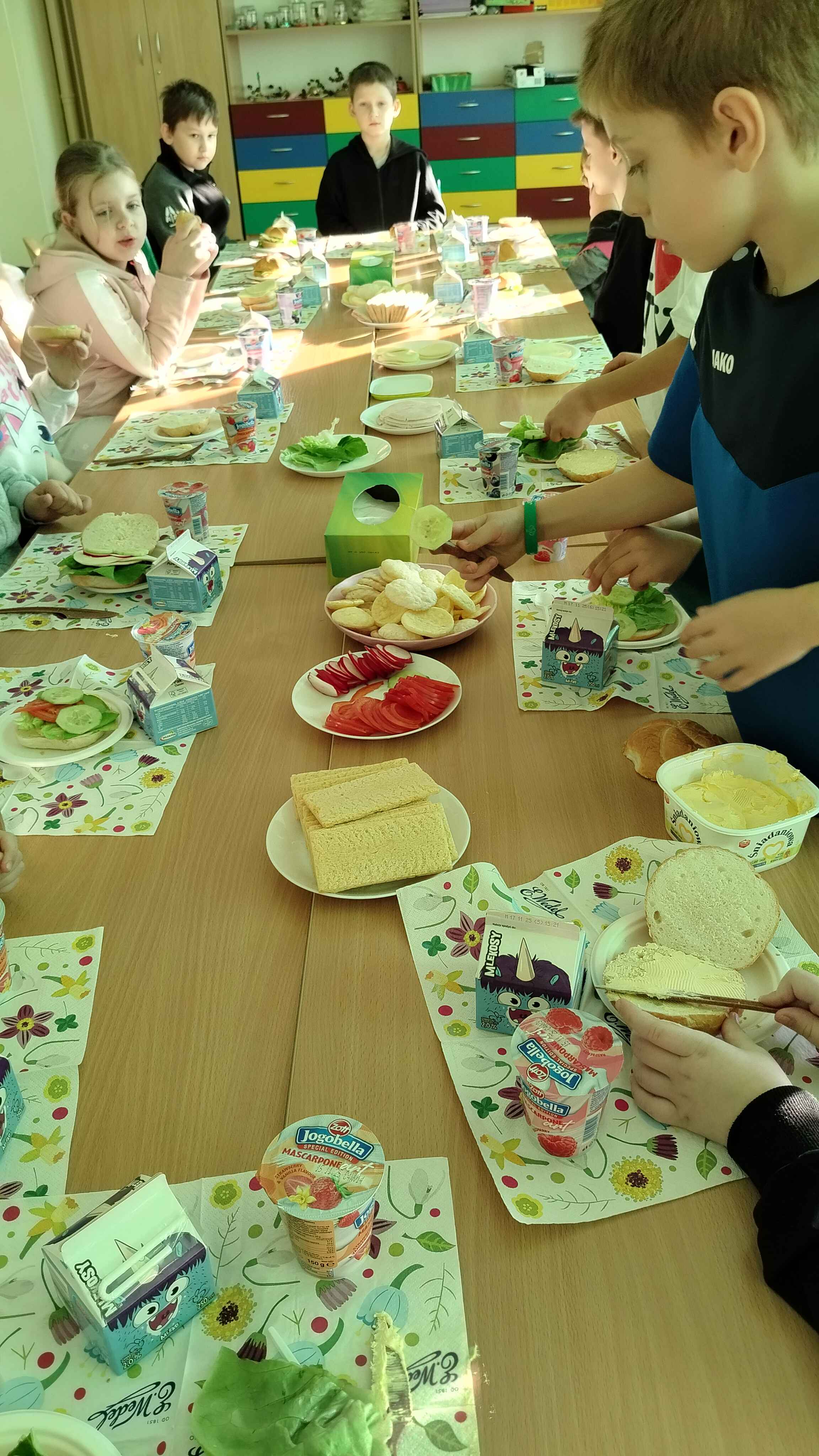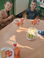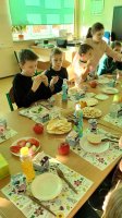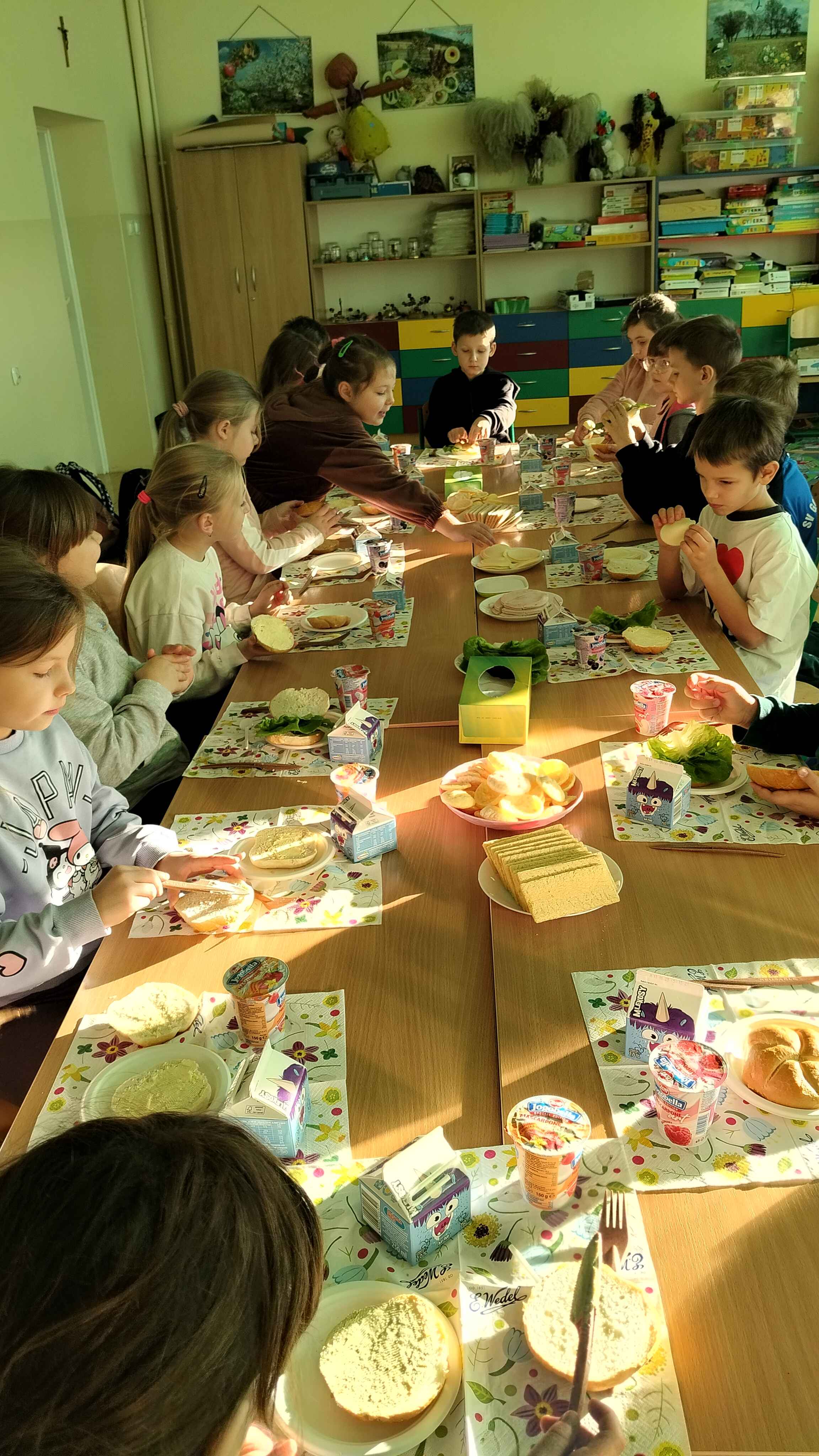 7 listopada przeprowadzono również pogadanki na temat roli śniadania, jako najważniejszego posiłku w ciągu dnia. Dobrze zbilansowany posiłek daje dzieciom siłę i energię do nauki i zabawy, przyczynia się do lepszej koncentracji na wykonywanych zadaniach. Wspólne przygotowanie i spożywanie śniadania sprawiło dzieciom wiele przyjemności i radości.
