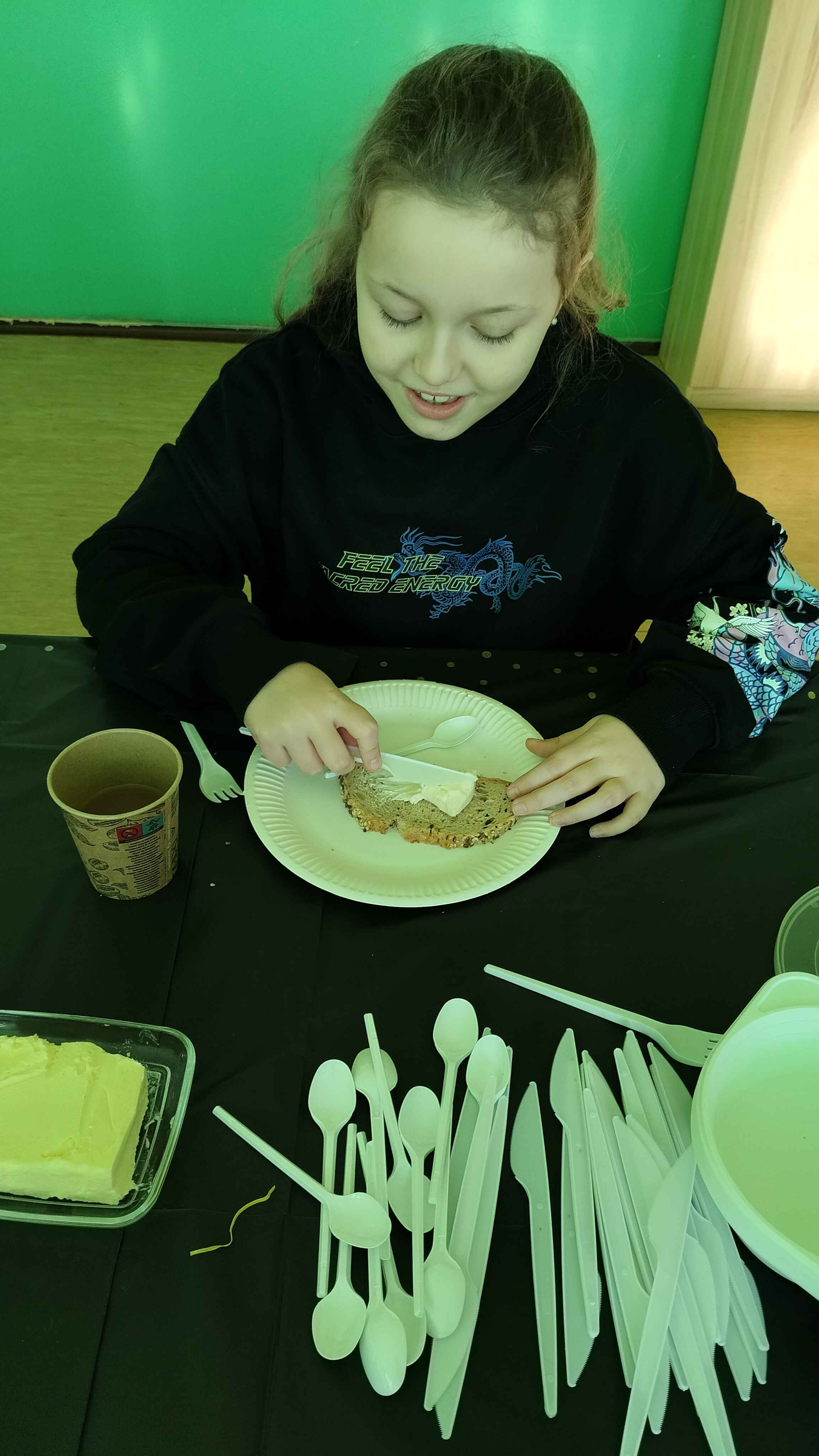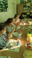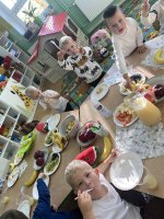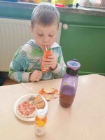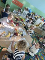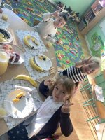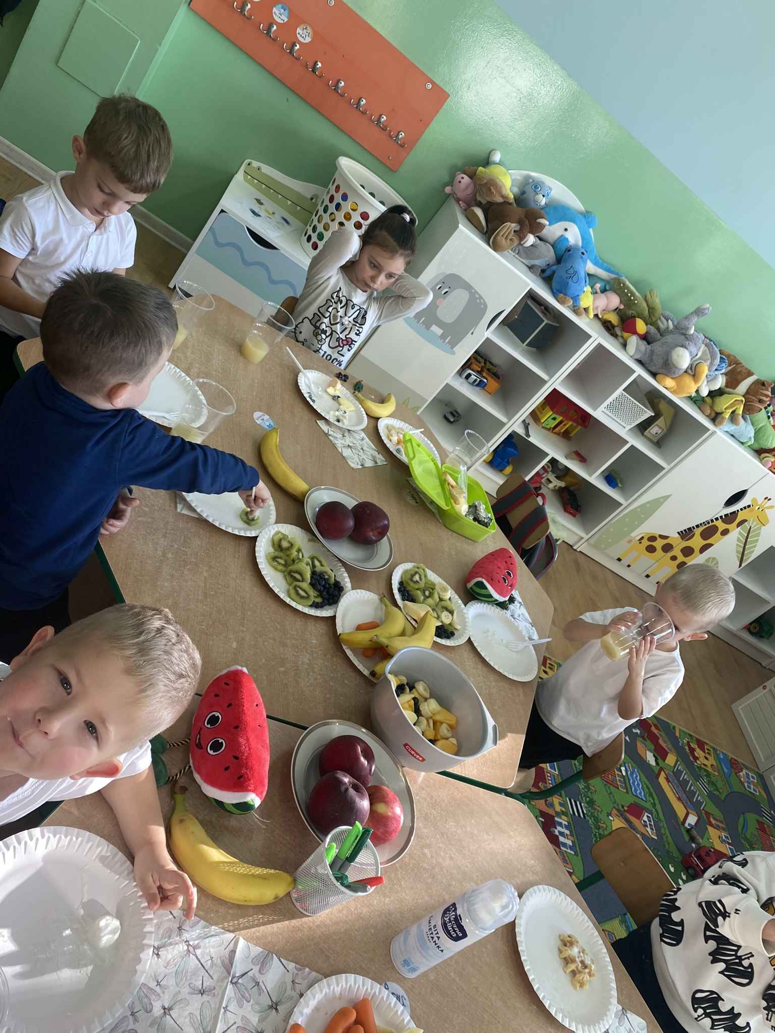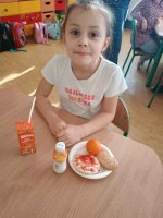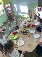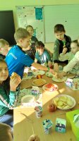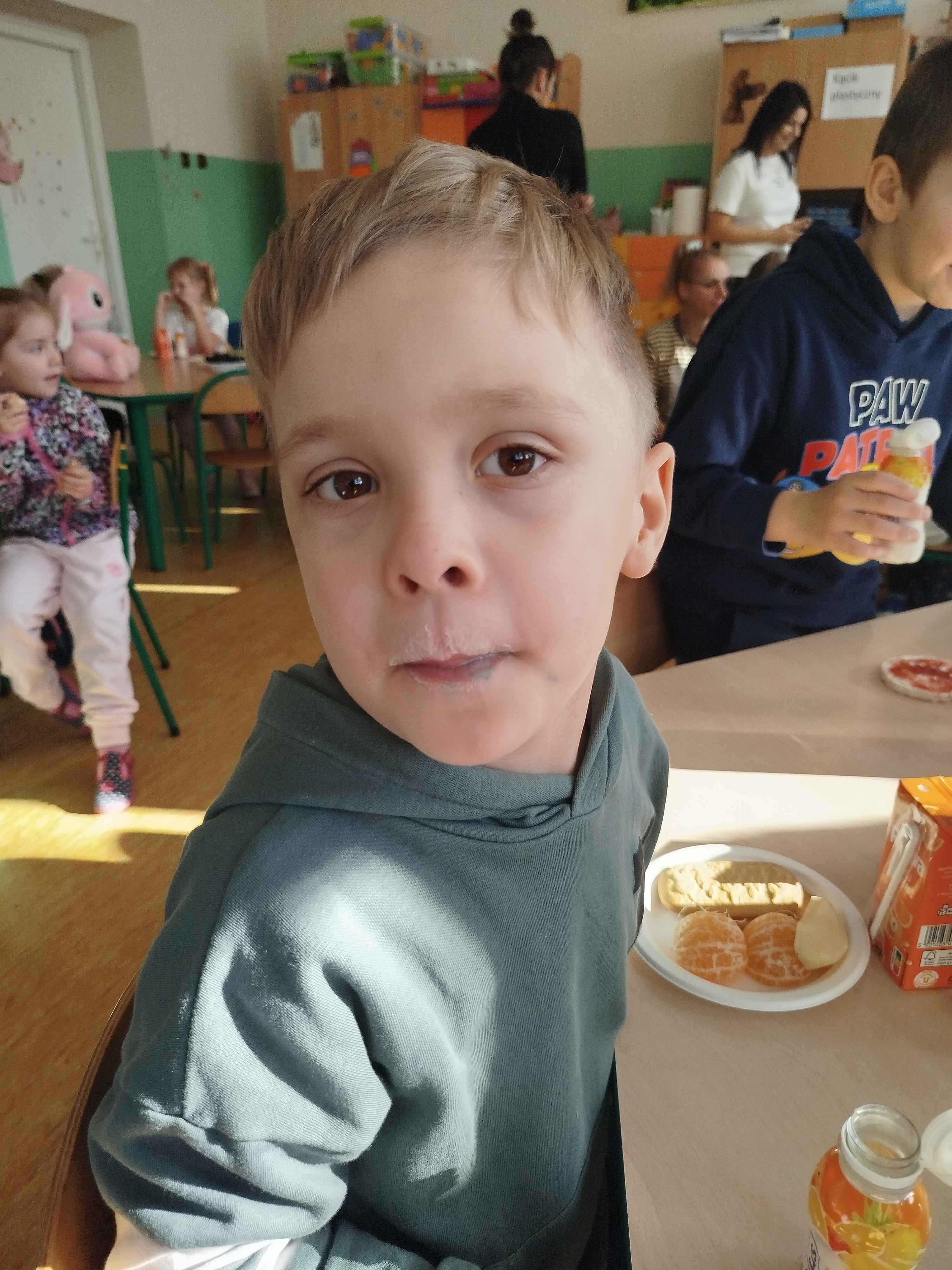 7 listopada przeprowadzono również pogadanki na temat roli śniadania, jako najważniejszego posiłku w ciągu dnia. Dobrze zbilansowany posiłek daje dzieciom siłę i energię do nauki i zabawy, przyczynia się do lepszej koncentracji na wykonywanych zadaniach. Wspólne przygotowanie i spożywanie śniadania sprawiło dzieciom wiele przyjemności i radości.