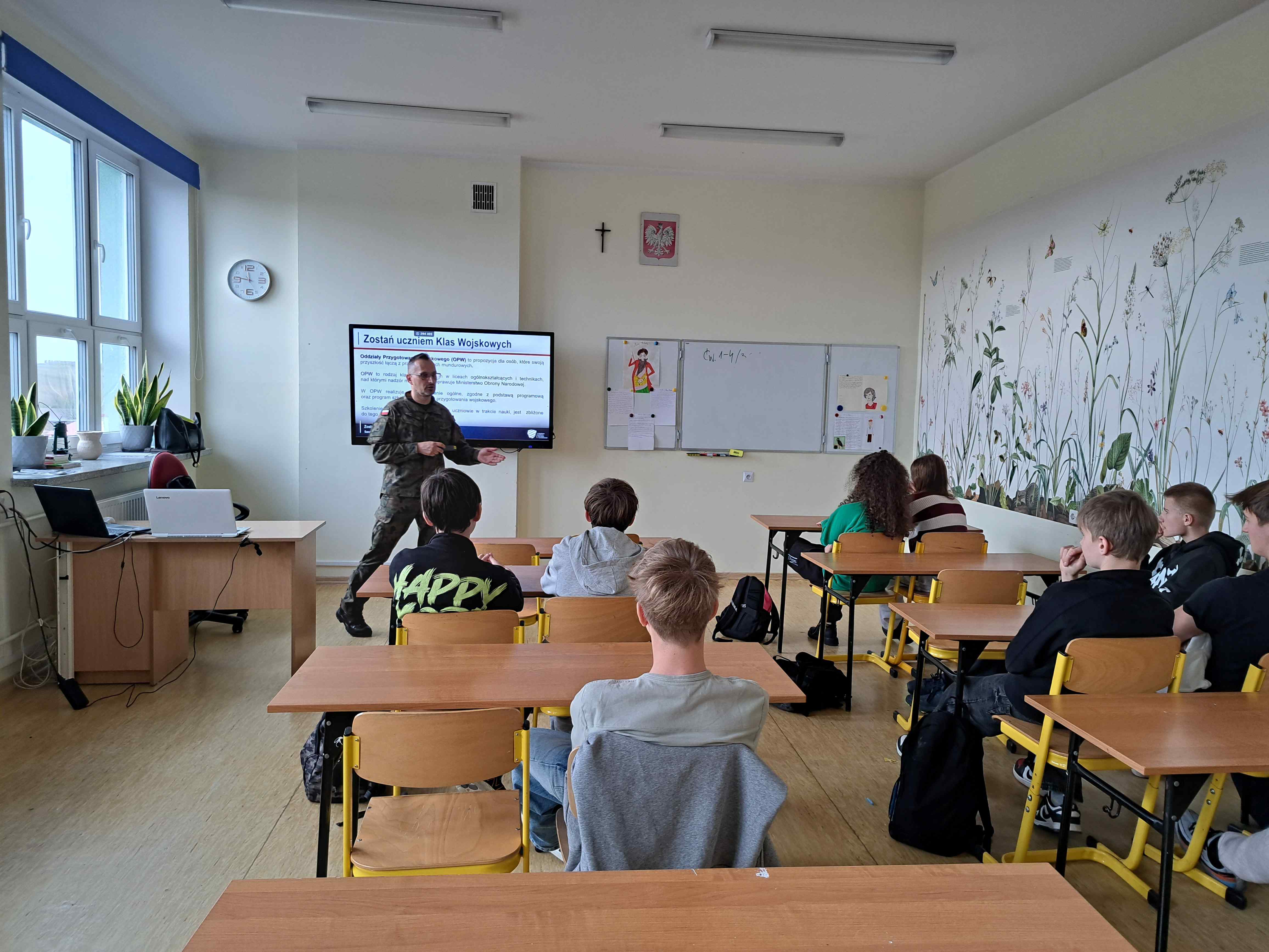 Uczniowie klasy 8 naszej szkoły mieli przyjemność wziąć udział w specjalnych zajęciach proobronnych prowadzonych przez żołnierzy.