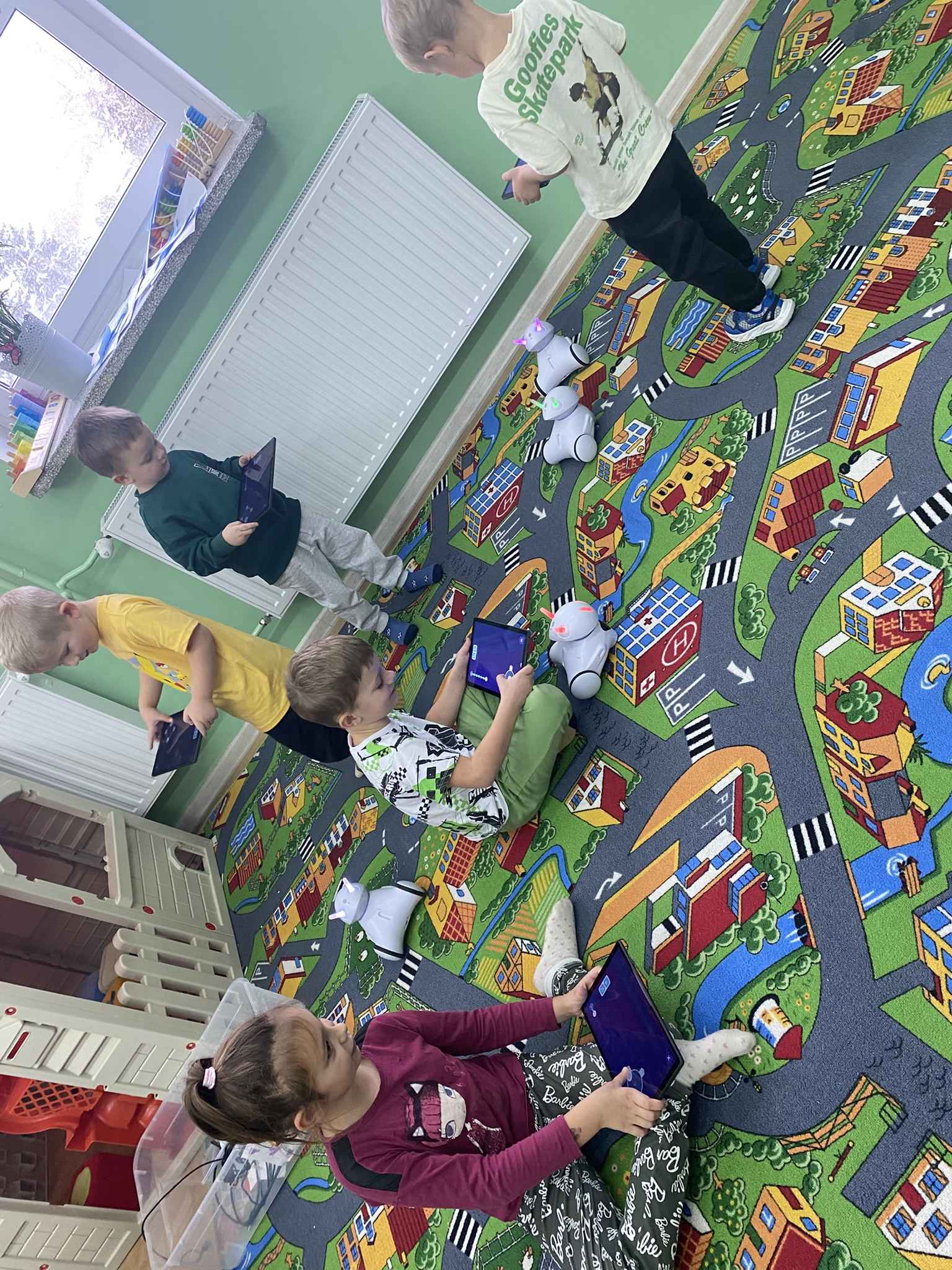 W ostatnim tygodniu w naszym przedszkolu w grupie ,,Jagódki” odbyły się zajęcia z robotyki, w których uczestniczyły wszystkie dzieci. Podczas spotkania przedszkolaki miały okazję poznać podstawy programowania poprzez zabawę z edukacyjnymi robotami.
