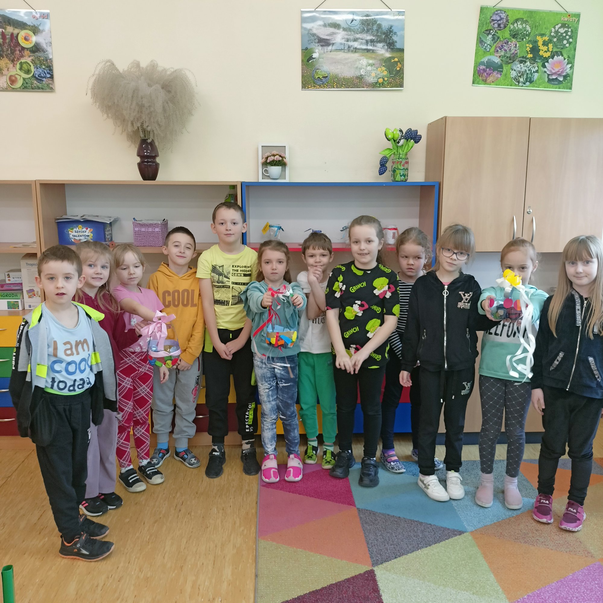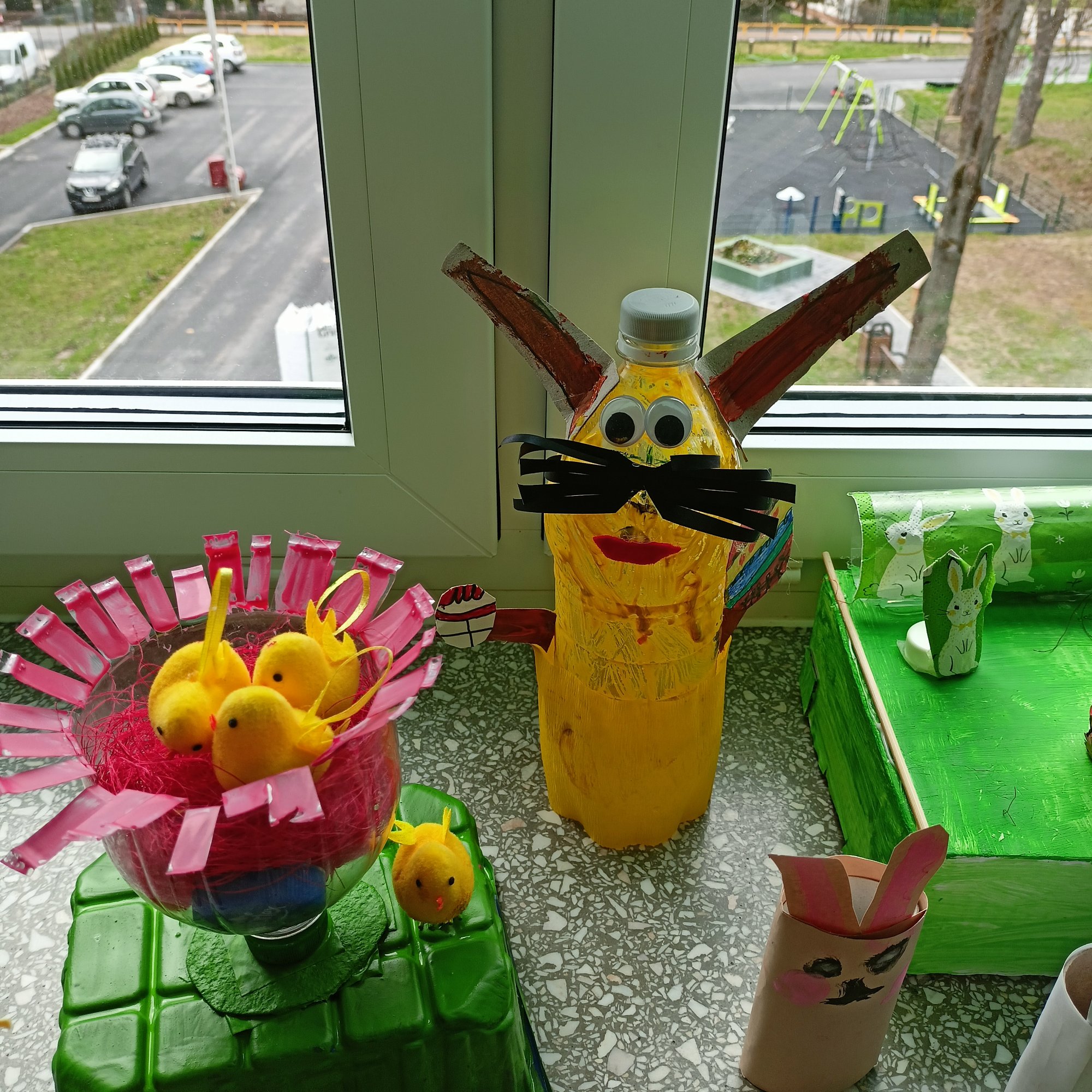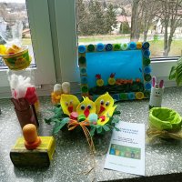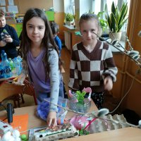 Ze zgromadzonych butelek, zakrętek, zużytych opakowań, papieru wykonały ozdoby wielkanocne, które zostaną zaprezentowane na szkolnej wystawie w Pierwszy Dzień Wiosny.
