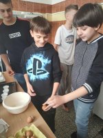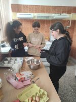 Poznali zasady bezpiecznego korzystania ze sprzętu kuchennego, uczyli się przestrzegania zasad higieny podczas przygotowywania posiłków oraz utrwalali nawyki kulturalnego zachowania się przy stole. Korzystając z przepisu, odmierzali składniki, wsypywali je do miski, miksowali przygotowując ciasto. Zapach wypiekanych muffinek roznosił się po szkole.
