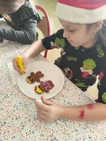 W grudniu w klasie drugiej odbyły się kreatywne zajęcia plastyczne. Dzieci pod okiem zaproszonego gościa pani Joanny Szczepańskiej z pracowni cukierniczej „OCH JAK SŁODKO”, dekorowały pierniki.