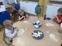 Za nami kolejny kreatywny piątek pełen artystycznych wrażeń! W ramach naszych „Plastycznych Piątków” przedszkolaki miały okazję stworzyć własne bałwanki z ryżu i skarpetek.