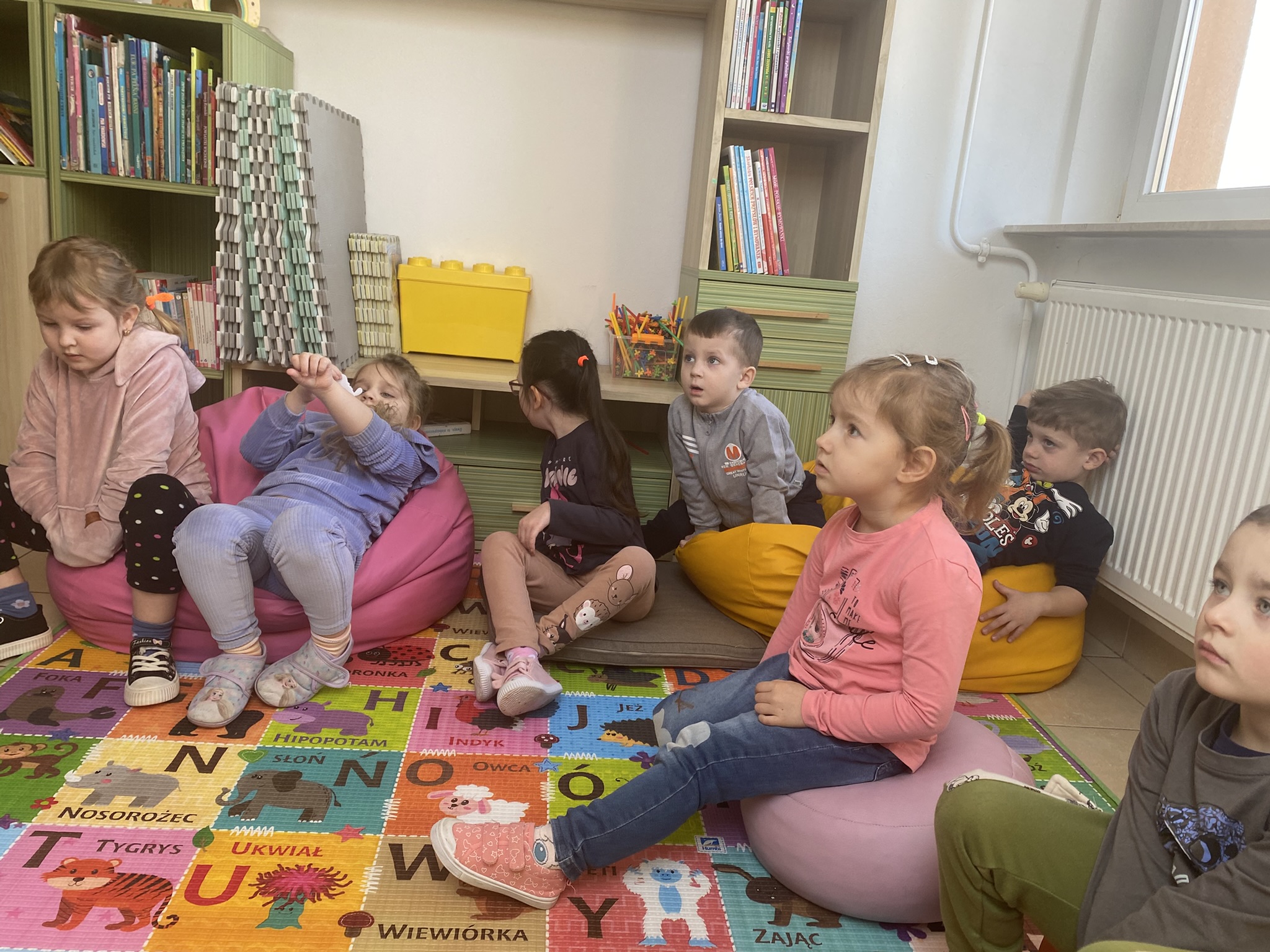 Nasze przedszkolaki miały wyjątkową okazję odwiedzić Bibliotekę Publiczną, gdzie czekała na nie prawdziwa uczta dla wyobraźni! 📖👧👦Dzieci z zaciekawieniem słuchały pięknie czytanych bajek, poznając nowe historie i bohaterów. 📚🐻🦊