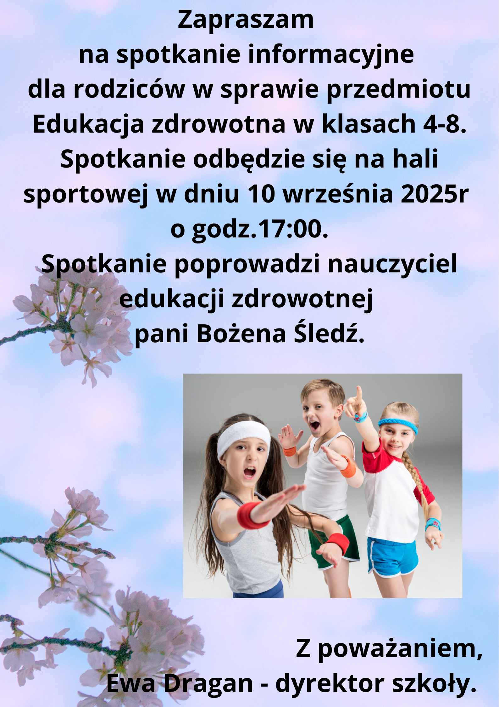 W dniu 10.09.2025r. odbędzie się spotkanie informacyjne dla rodziców kl. 4-8.