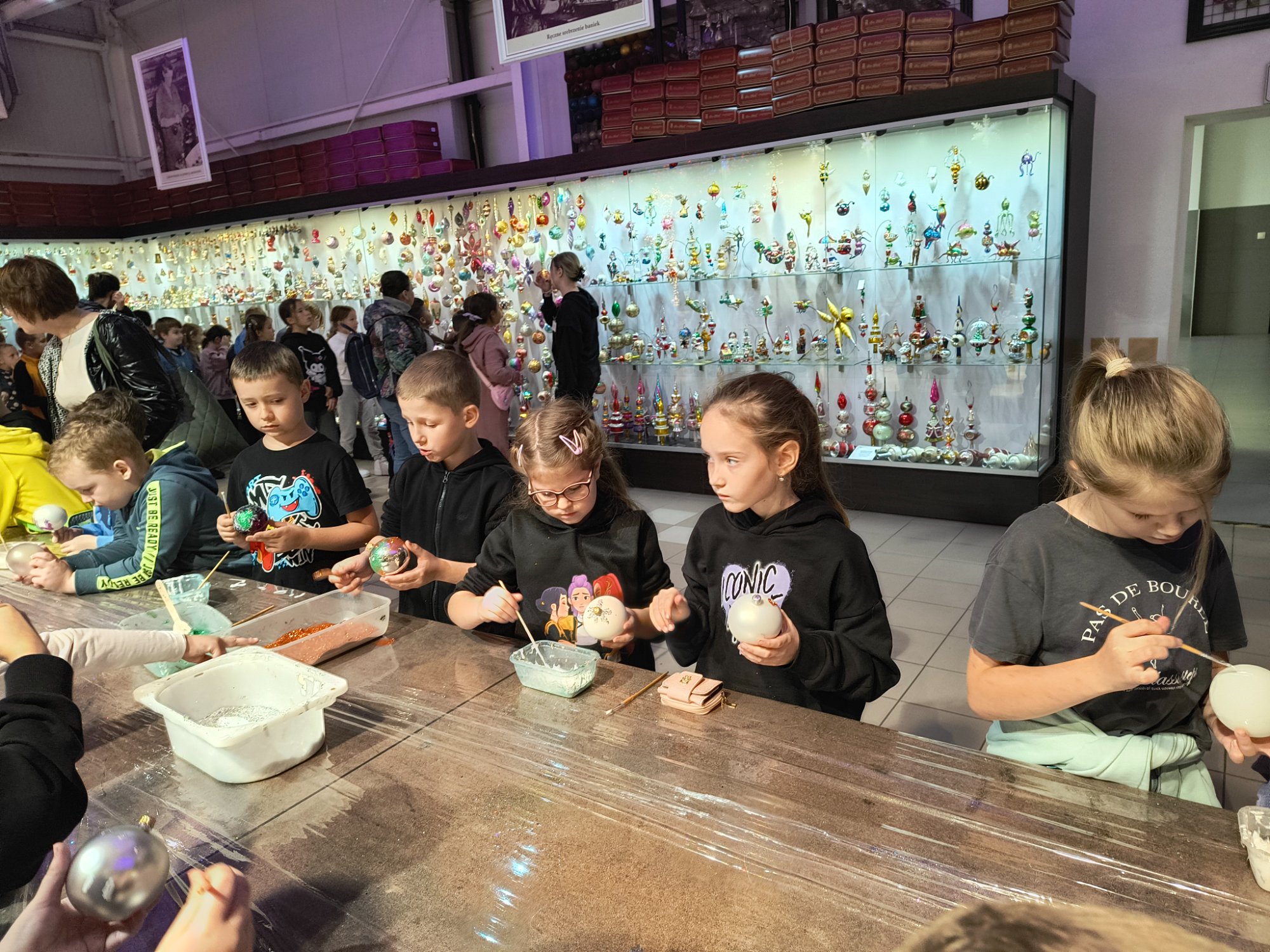 Wysłuchali historii tworzenia ozdób świątecznych, zobaczyli w jaki sposób powstają szklane cudeńka. Wzięli udział w warsztatach zdobienia bombek.