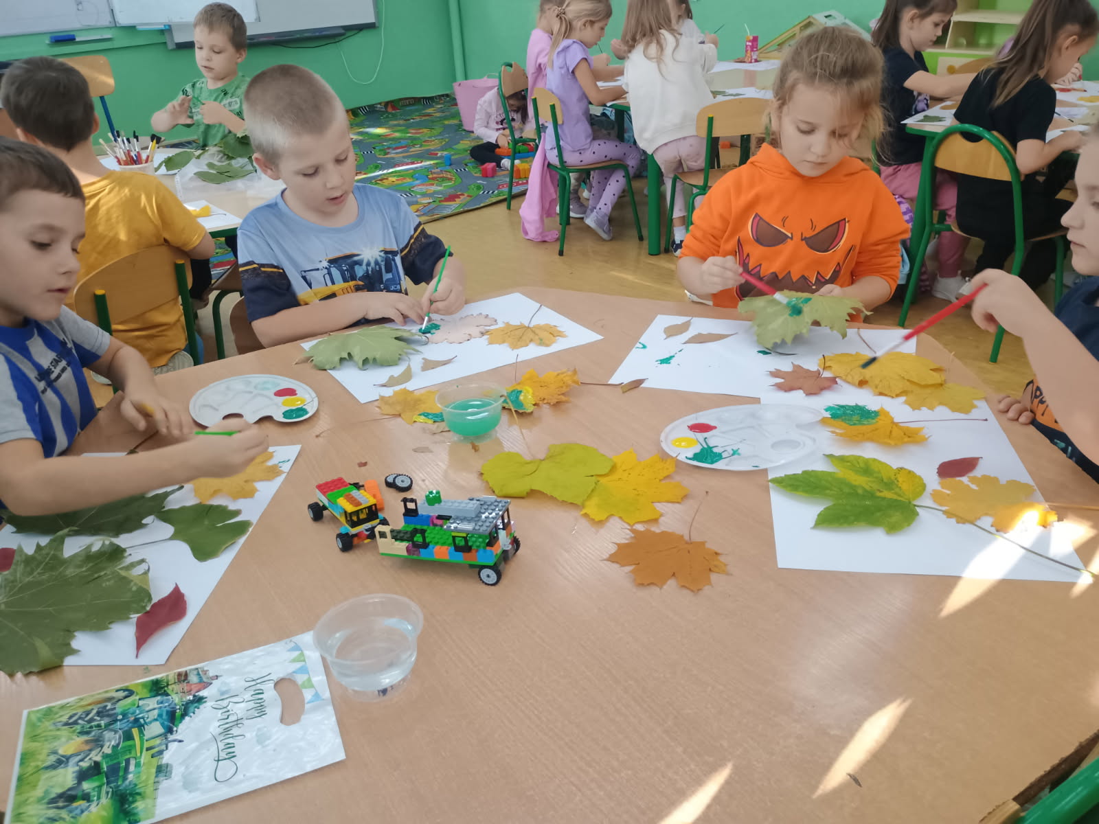 Jesień to piękna pora roku, więc dzieci z grupy Stokrotki w słoneczny jesienny dzień wyszły ze swoimi Paniami na świeże powietrze by pozbierać opadłe już listki, kasztany oraz żołędzie. W klasie, skarby jesieni dzieci podzieliły na zbiory, przeliczyły i schowały na noc by wyschły.