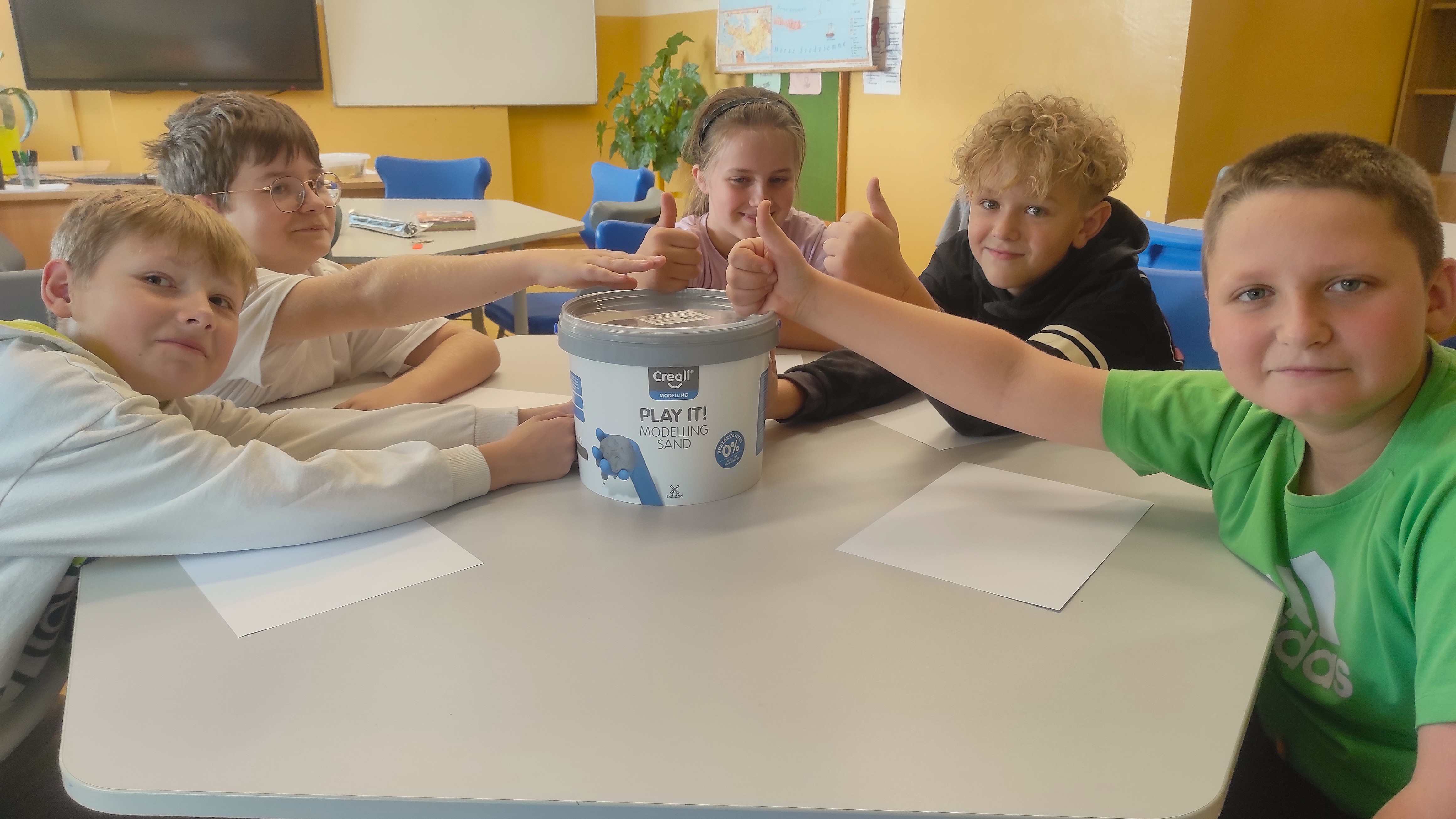 Uczniowie na zajęciach Arteterapi wykonywali ćwiczenia manualne z wykorzystaniem piasku kinetycznego. Piasek kinetyczny to nie tylko świetna zabawa, ale także sposób na wspieranie rozwoju dziecka.